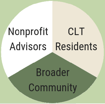 The central and ongoing purposes of Urban EcoBlock Community Land Trust (CLT) is to: 1) preserve equity, ecological and land stewardship in perpetuity, 2) assure ongoing affordability and mixed income community, and 3) manage the business of common systems, resale formula and land acquisition.